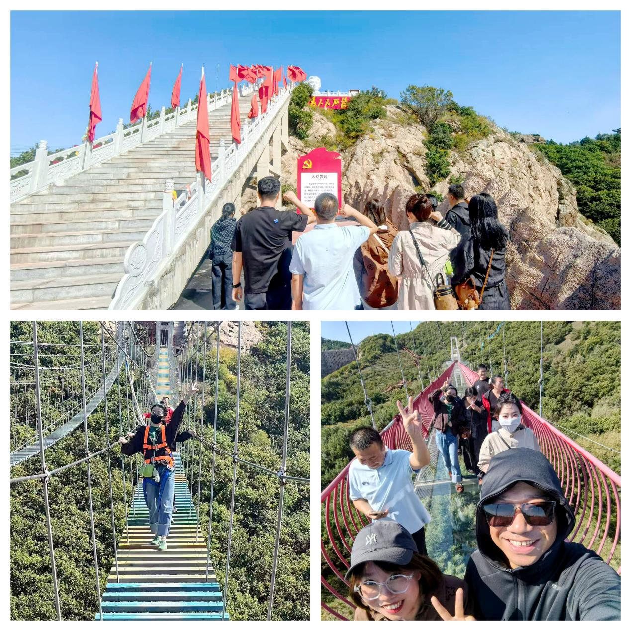 秋陽(yáng)穿透薄霧,為大龍山的懸崖峭壁鍍上一層金芒。園區(qū)特別設(shè)計(jì)了“重走長(zhǎng)征微步道”,職工們登上長(zhǎng)長(zhǎng)的石階后,沿著陡峭的崎嶇山路前行,將團(tuán)隊(duì)協(xié)作與歷史情境深度融合。玻璃棧道上,望著腳下遠(yuǎn)遠(yuǎn)的樹尖,有了攜手?jǐn)v扶的隊(duì)友,恐高的同事們,也紛紛登上棧道,在團(tuán)隊(duì)的幫扶下,大家挑戰(zhàn)了自己,克服了恐懼。”大家?guī)е@份從云端汲取的力量,把“同心”刻進(jìn)日常,把“敢闖”融進(jìn)血脈。